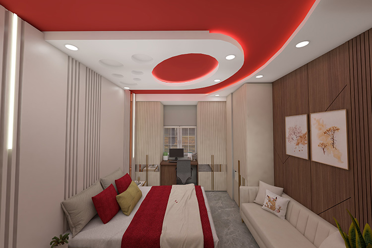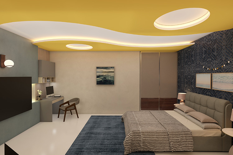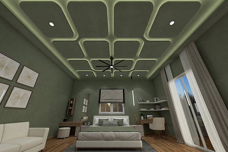 A false ceiling is a good addition to any room. It helps with the acoustics of the bedroom and also helps lower the temperature of the room. A bedroom false ceiling helps reduce the electricity bill and has fire resistant and water repellent properties.